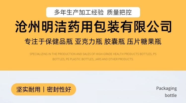 滄州明潔生產(chǎn)銷售亞克力膠囊瓶,蜂膠軟膠囊瓶,保健品分裝瓶,子彈頭瓶,鈣片瓶,維生素VC瓶,鈣片咀嚼片分裝瓶,軟膠囊瓶,壓片糖果瓶,中藥丸瓶,避光塑料瓶,固體片劑瓶,塑料藥瓶,產(chǎn)品規(guī)格多,外觀新穎,彰顯大氣。